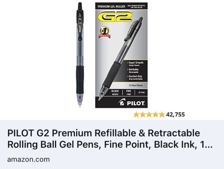 Try PILOT G2 Premium Refillable & Retractable Rolling Ball Gel Pens, Fine Point, Black Ink, 12 Count (Pack of 1) (31020). As an Amazon Associate, I earn from qualifying purchases. #ad #CommissionsEarned #shop #amazon #shopping #amazonfinds #amazondeals